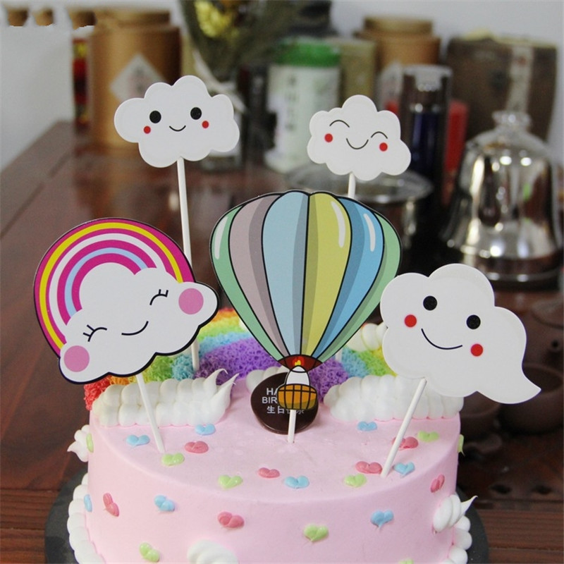 Cake Toppers Flags Hot Air Balloon Rainbow Happy Birthday Cloud