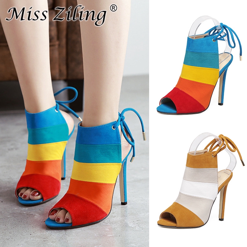 Chic Beautiful Rainbow Casual Womens Sandals 2020 11 Cm Stiletto Heels Open Peep Toe Multi Colors Sandals
