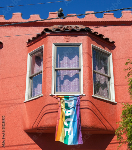 Golden Orange San Francisco Bay Window With Rainbow Peace Flag