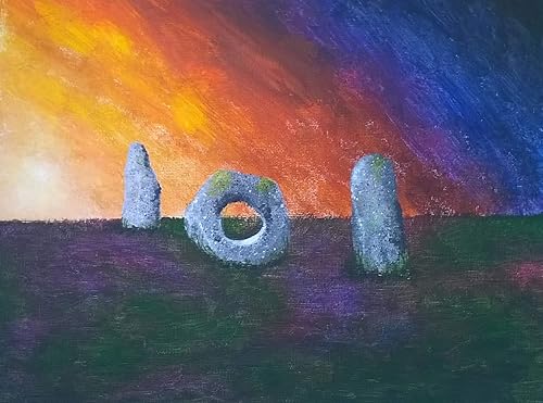 Original Painting Men An Tol With Rainbow Sky Unique Cornish Art Amazon Co Uk Handmade