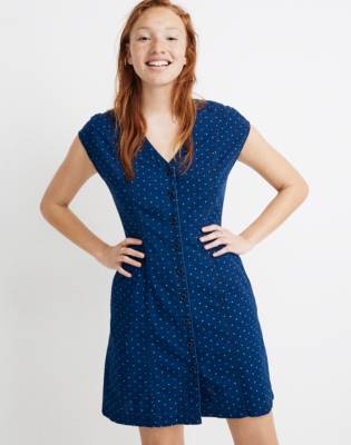 Indigo Cap Sleeve Button Front Dress In Rainbow Heart