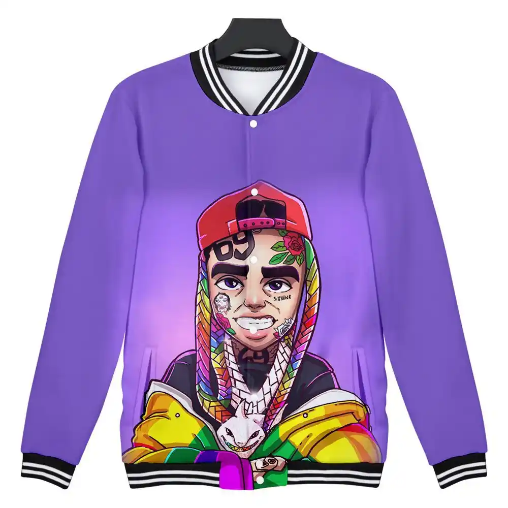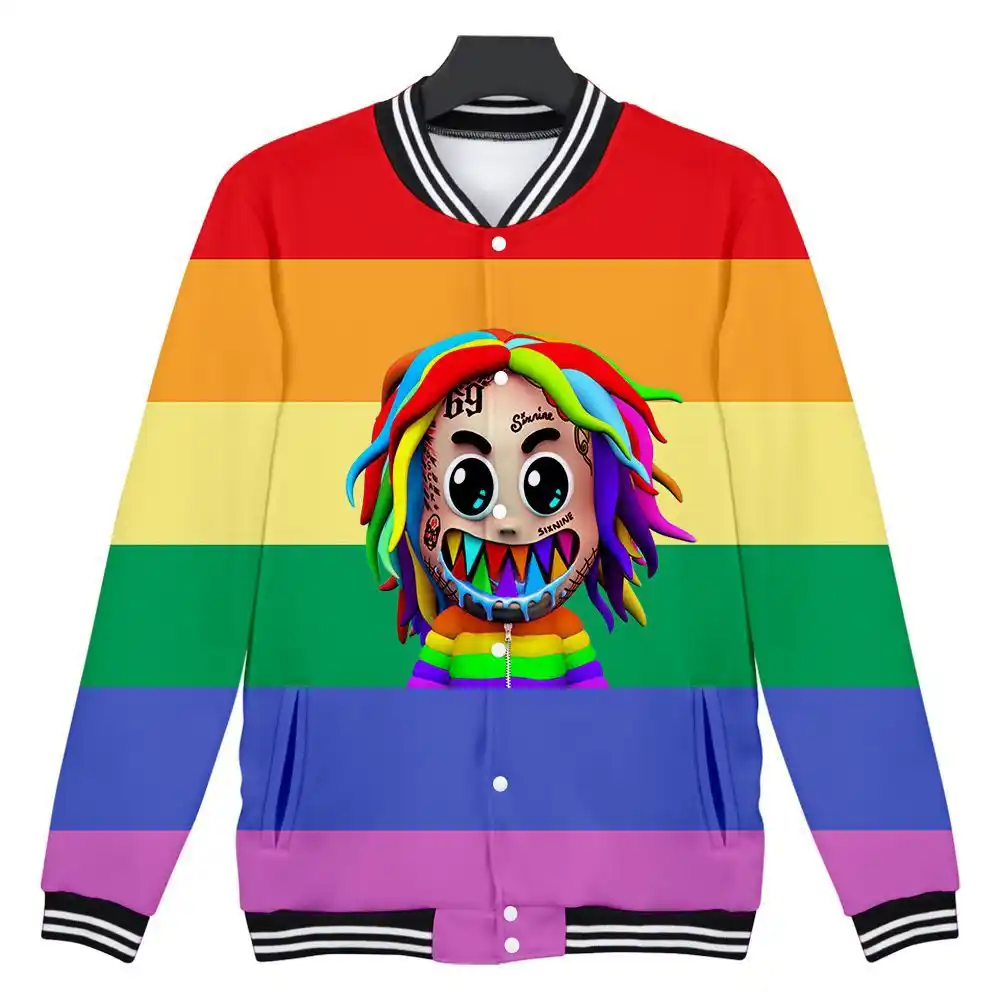Rapper 6ix9ine Gooba Rainbow 3d Printed Zip Up Baseball Jacket