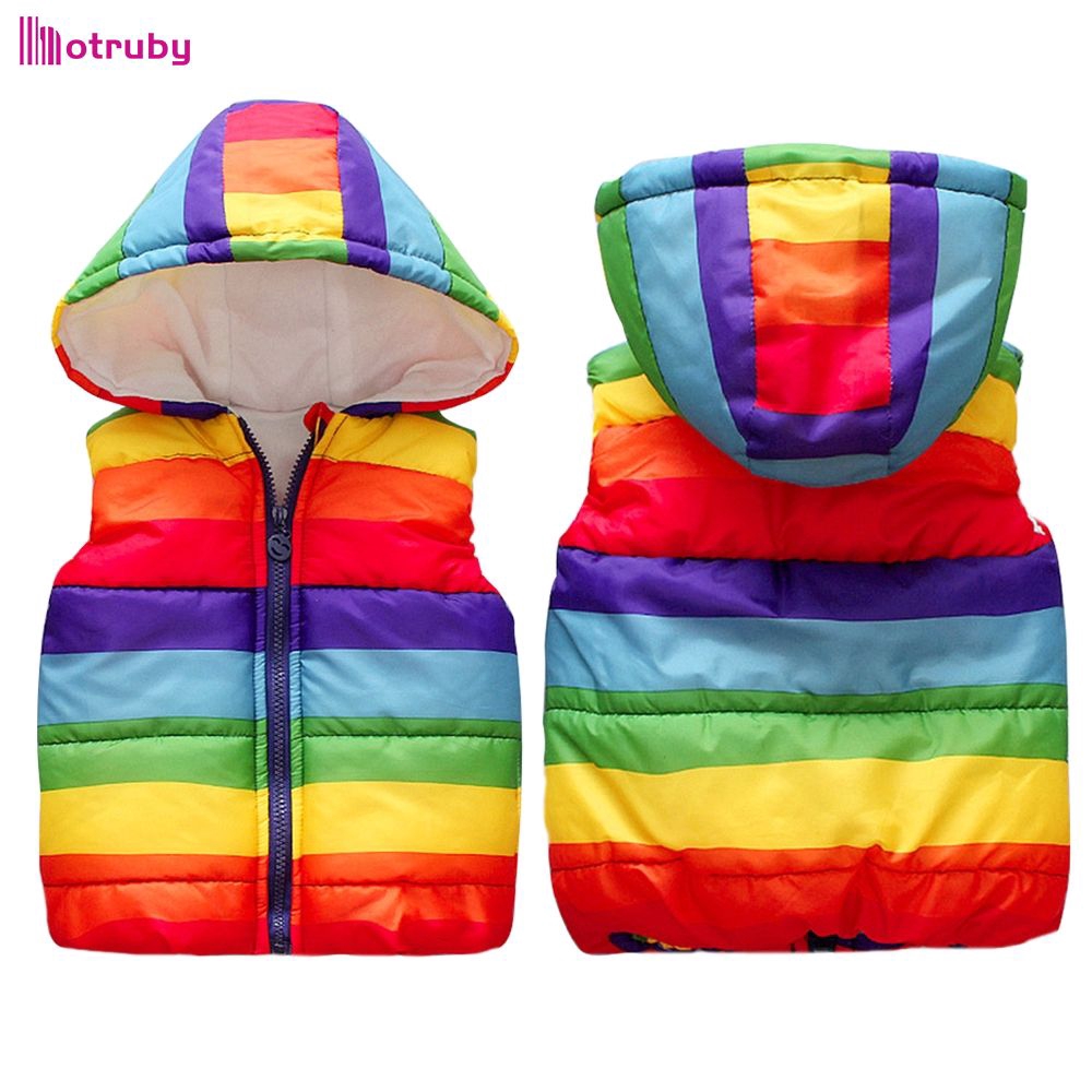 Children S Vest Jacket Boys Girls Rainbow Hooded Light Warm Cotton