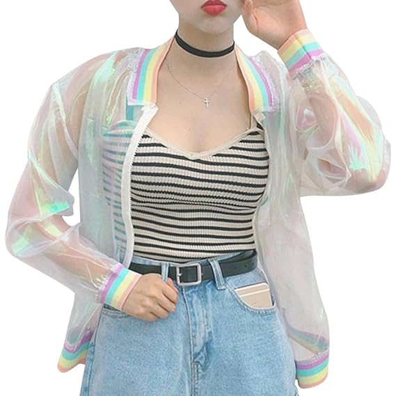 Amazon Com Women Girls Holographic Rainbow Jacket Iridescent See