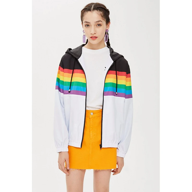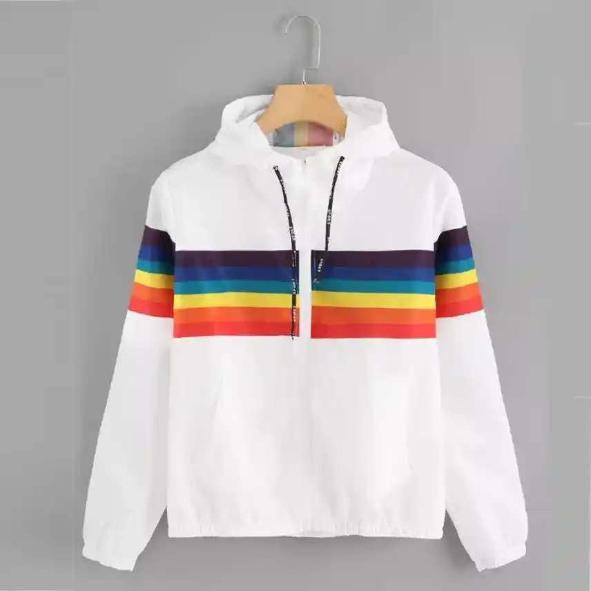 Women S Clothing Rainbow Striped Windbreaker Jacket Buy