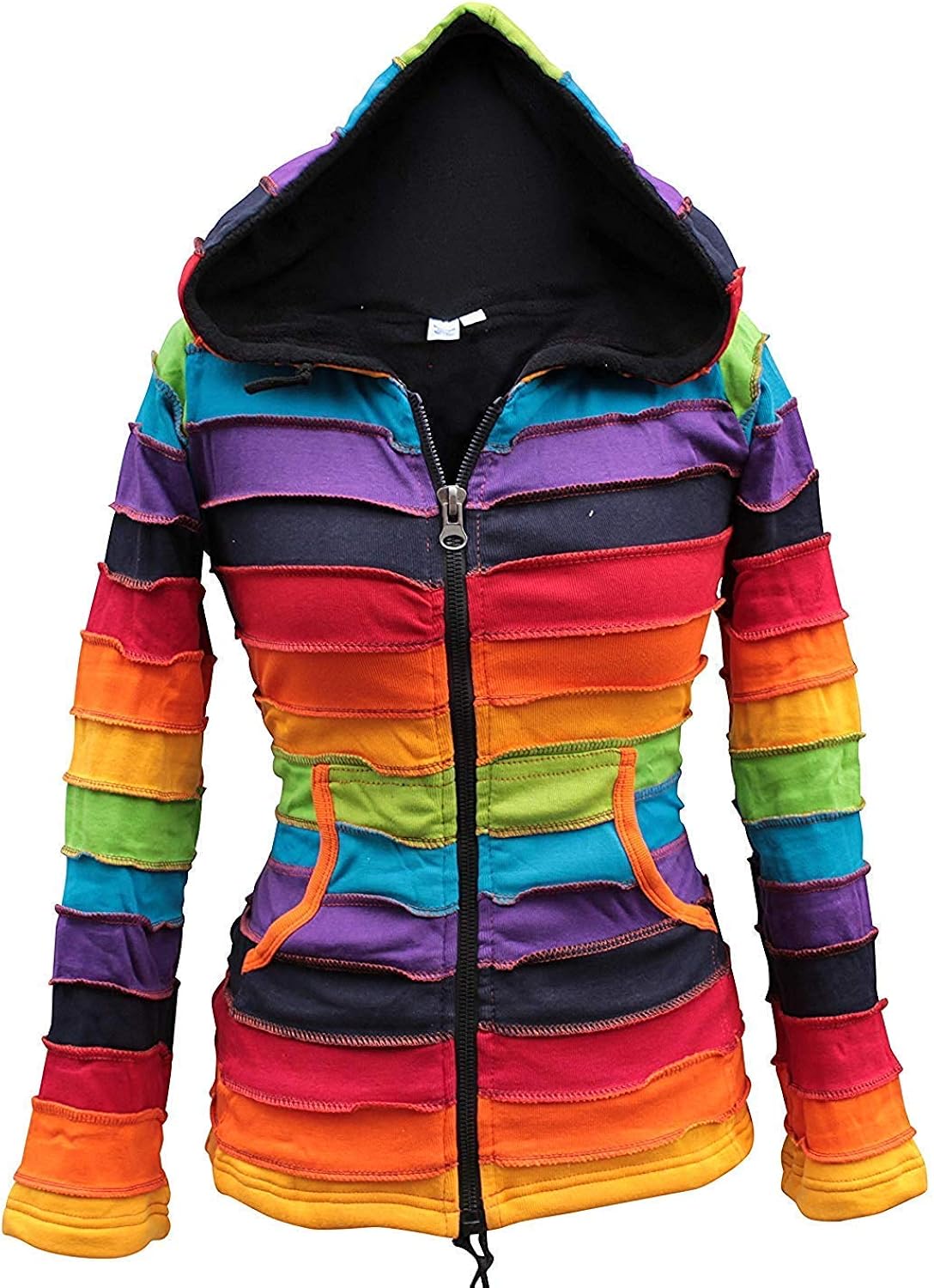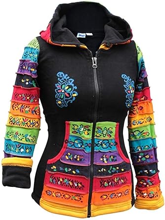 Shopoholic Fashion Womens Fleece Lined Hippy Black Rainbow Jacket