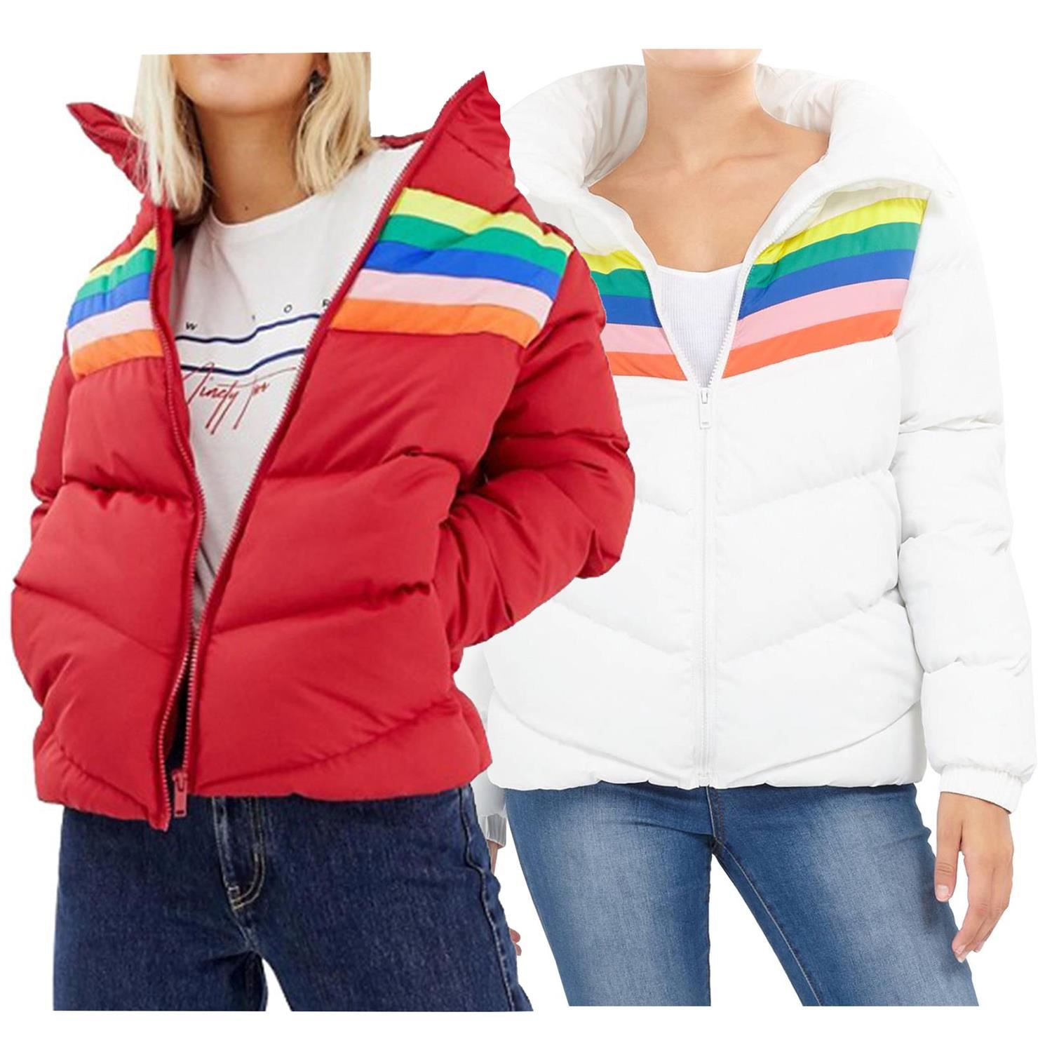 New Womens Rainbow Stripe Design Insert Padded Jacket Coat Ebay