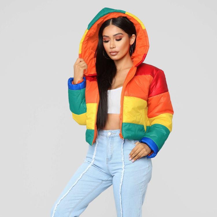2020 Harajuku Winter Casual Jacket Women Rainbow Wadded