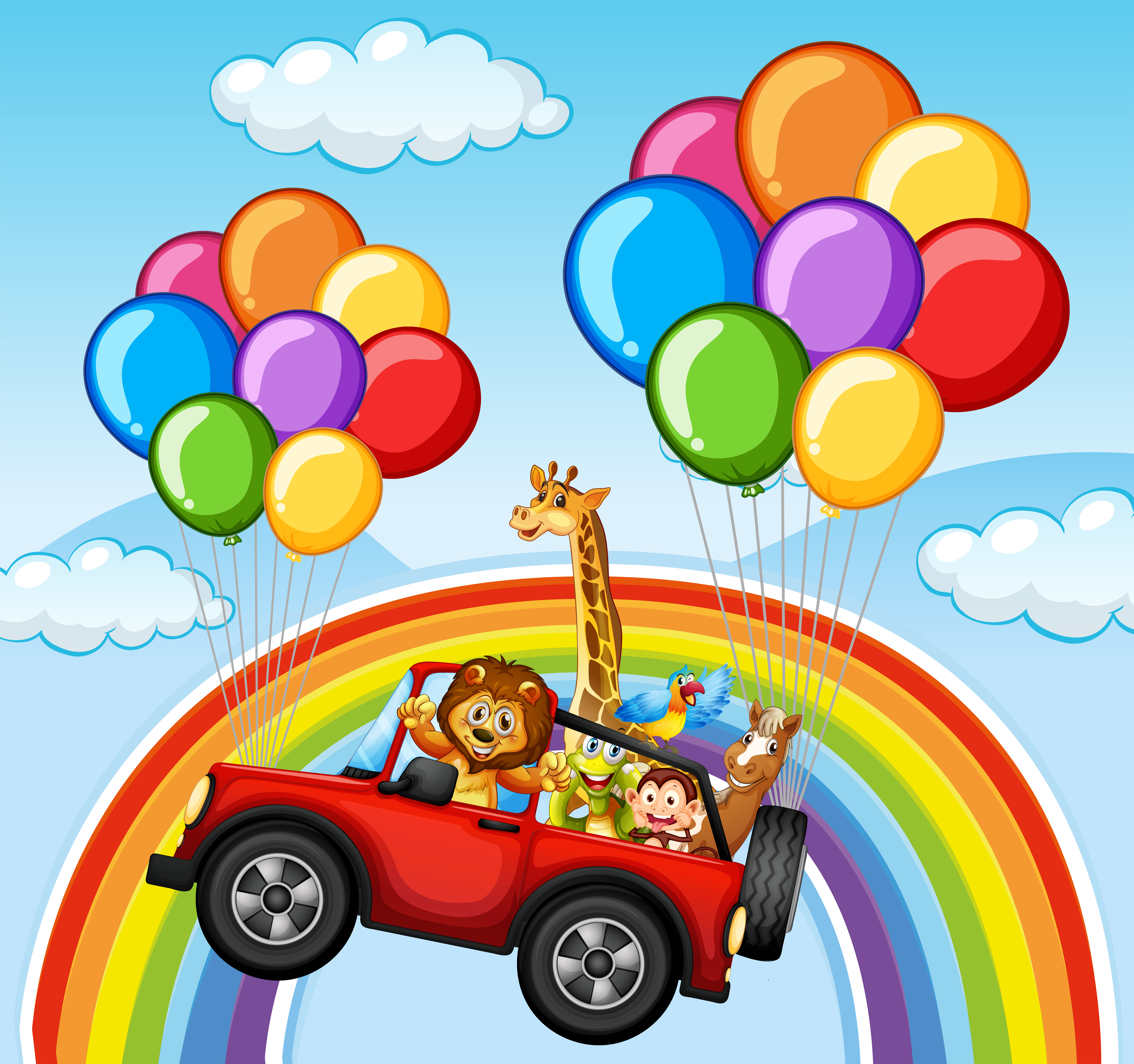 Wild Animals In Jeep Over The Rainbow Download Free Vectors