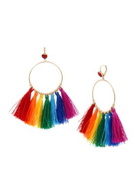 Betsey Johnson Rainbow Tassel Gypsy Hoop Earrings Belk
