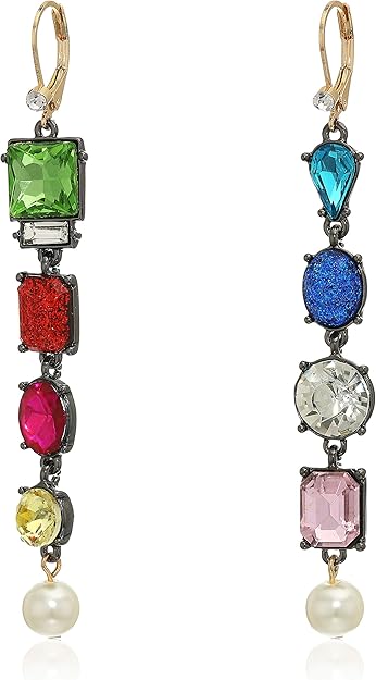 Betsey Johnson Goldtone And Rainbow Stone Bar Long Drop Earrings