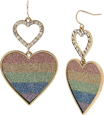 Amazon Com Betsey Johnson Glitter Heart Double Drop Earrings