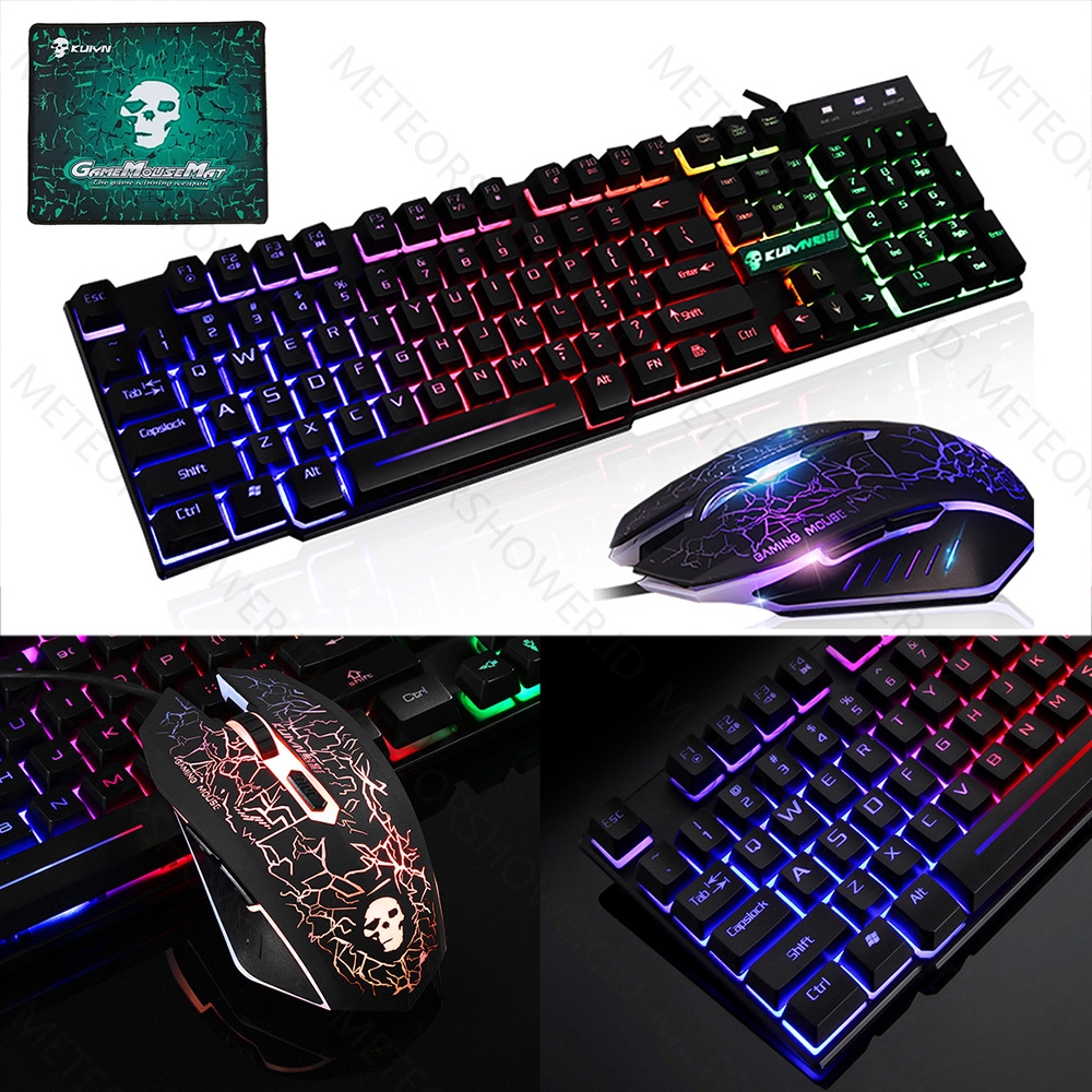 Gaming Keyboard And Mouse Set Rainbow Led Usb Illuminated For Pc
