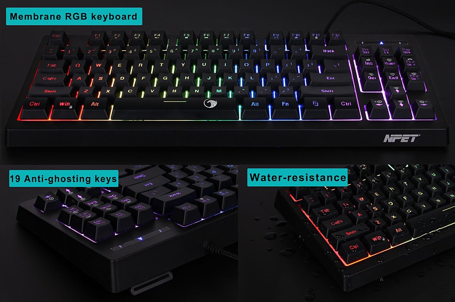 Npet G11 Gaming Keyboard 87 Keys Small Compact Rainbow Backlit