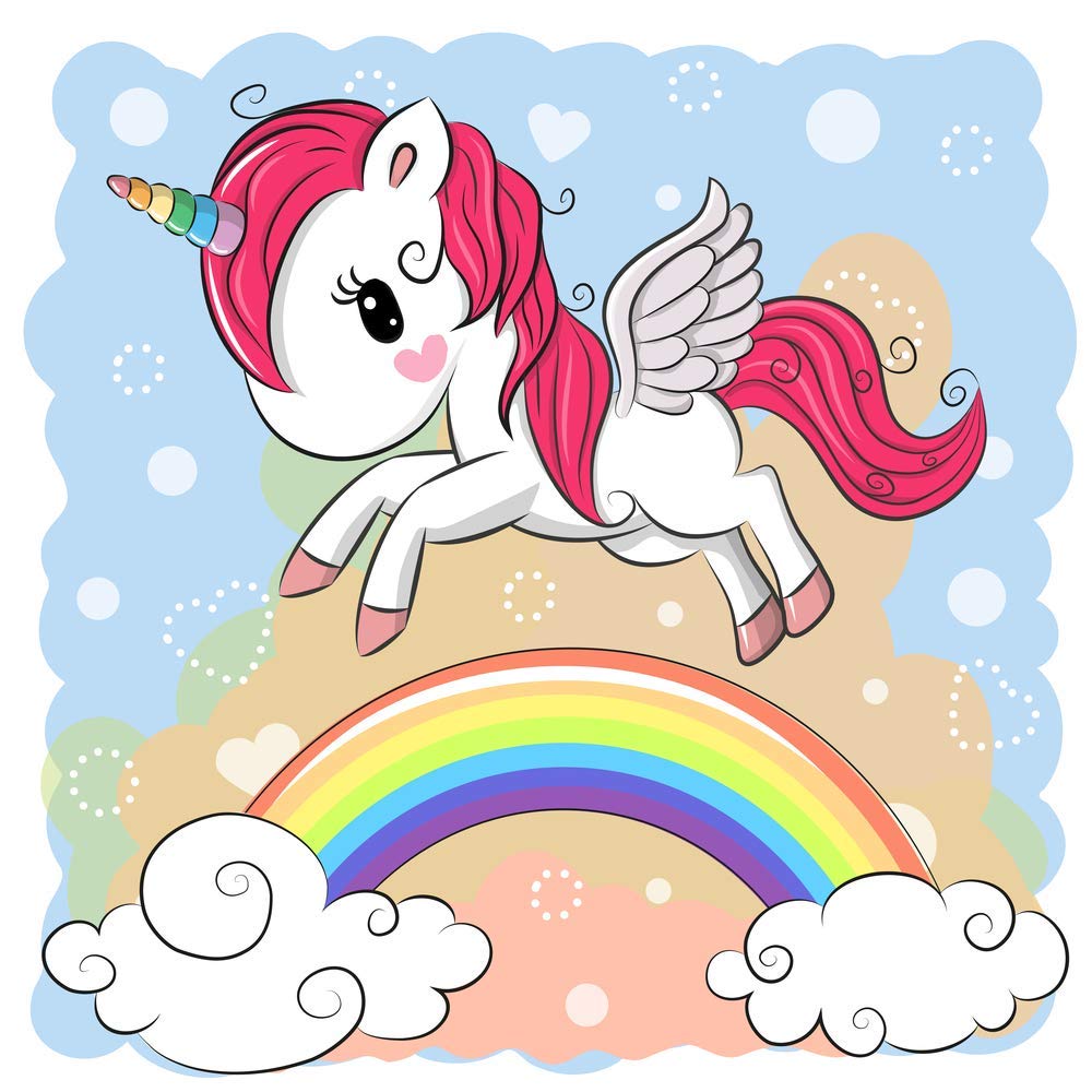 Magic Unicorns On Rainbow Cute Kids Cartoon Fantasy Animal