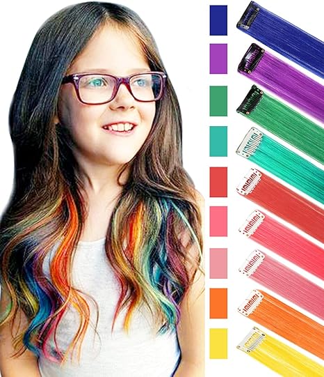 Rainbow Hair Extensions Colored Party Highlights Straight Hair