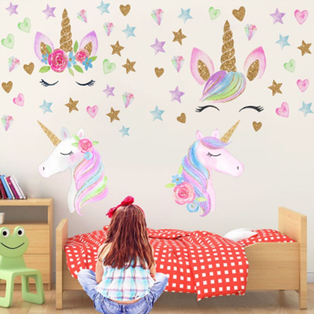 Unicorn Wall Stickers Rainbow Kids Girls Room Stars Nursery Diy