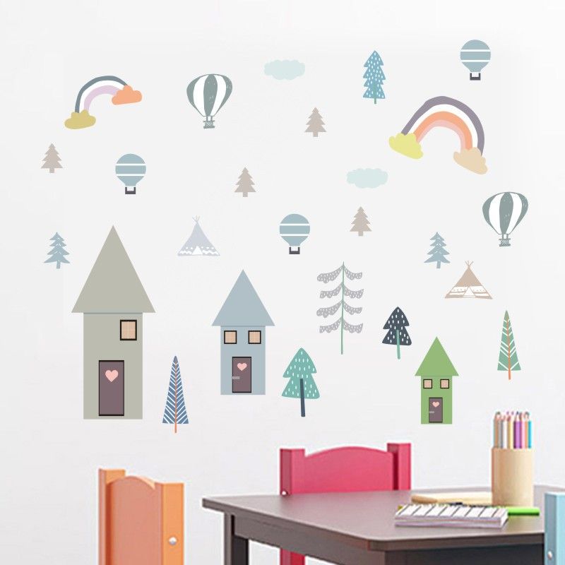 Rainbow Trees Diy Wall Sticker Cartoon Nordic Style Warm Kids Room