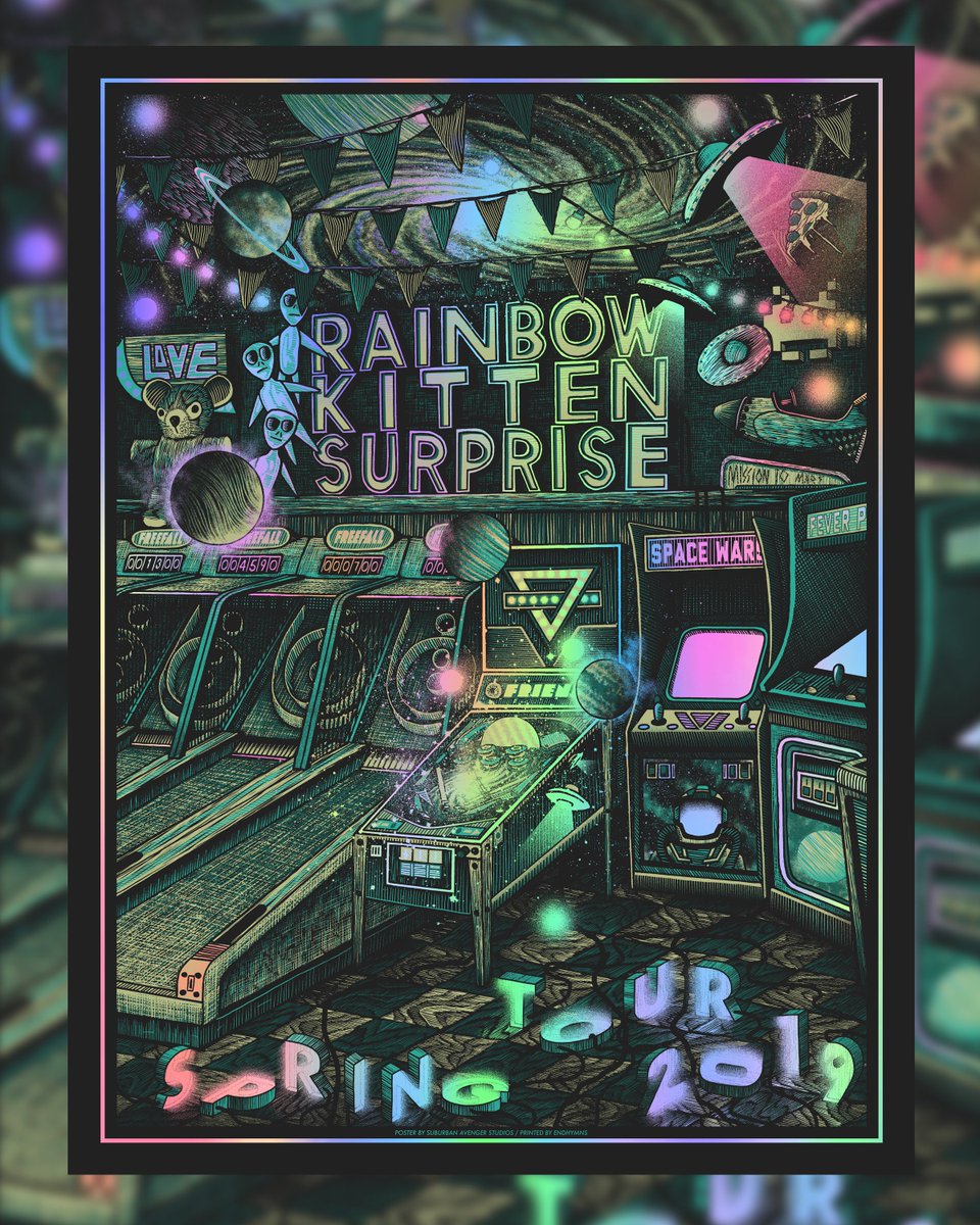 Rainbow Kitten Surprise Holographic Foil Rocket Ship Poster Nate