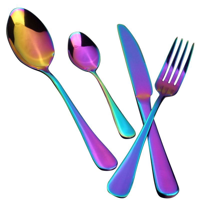 Unique Rainbow Stainless Steel Cutlery Flatware Kitchen Knife Fork Spo