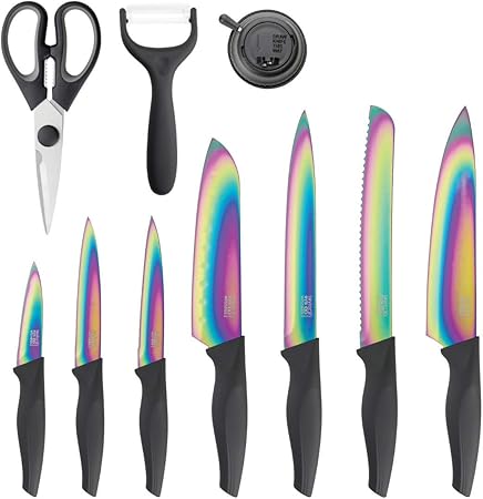 Amazon Com Hampton Forge Hmc01e550s Rainbow Titanium 10 Piece Knife Set With Blade Guards Stainless Steel Boxed Knife Sets Kitchen Dining