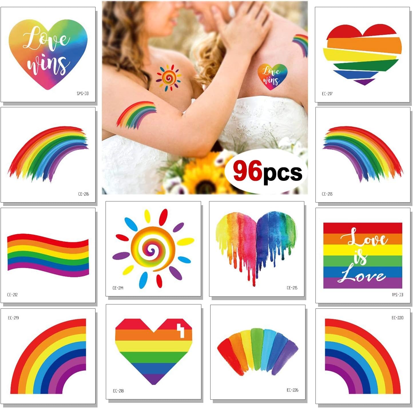 Konsait 96 Sheets Lgbt Gay Pride Temporary Tattoos Rainbow Flag