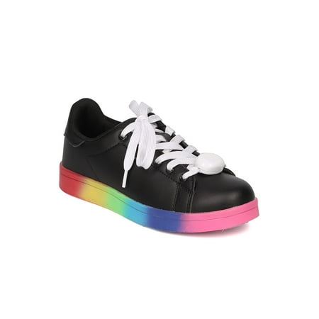 Shoes Women Leatherette Rainbow Light Up Lace Low Top Sneaker