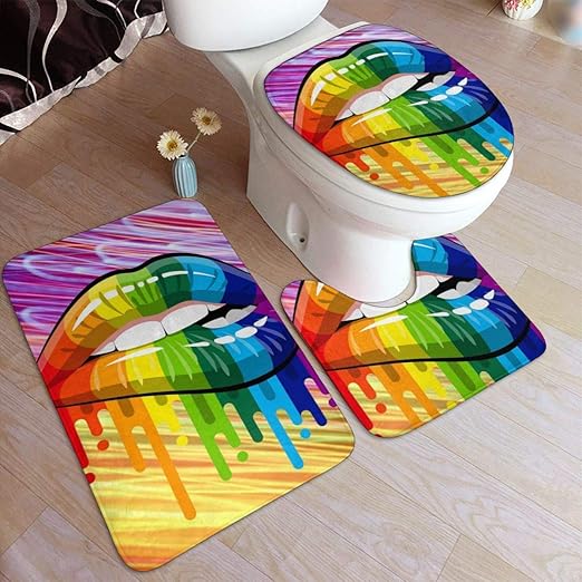 Amazon Com Rainbow Lips Tattoo Comfort Flannel Bathroom Rug Mats