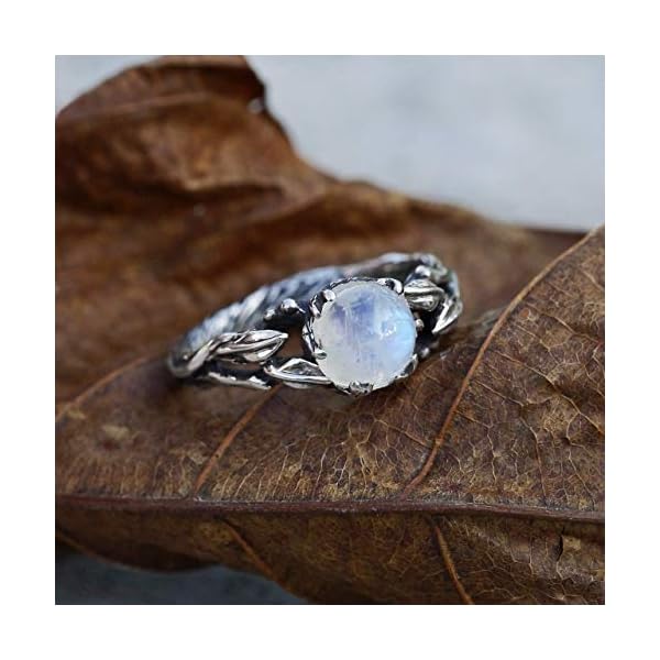 Moonstone Engagement Ring Rainbow Moonstone Boho Leaves Ring Etsy