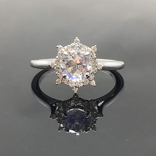 Round Rainbow Moonstone Engagement Ring Floral Setting White