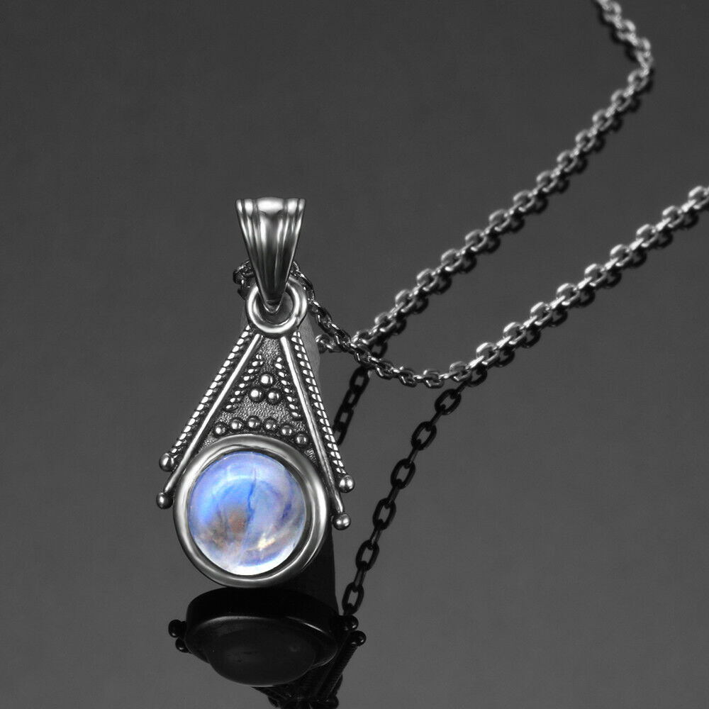 Buy Rainbow Moonstone Pendant Necklace Chain Round Silver Pendant