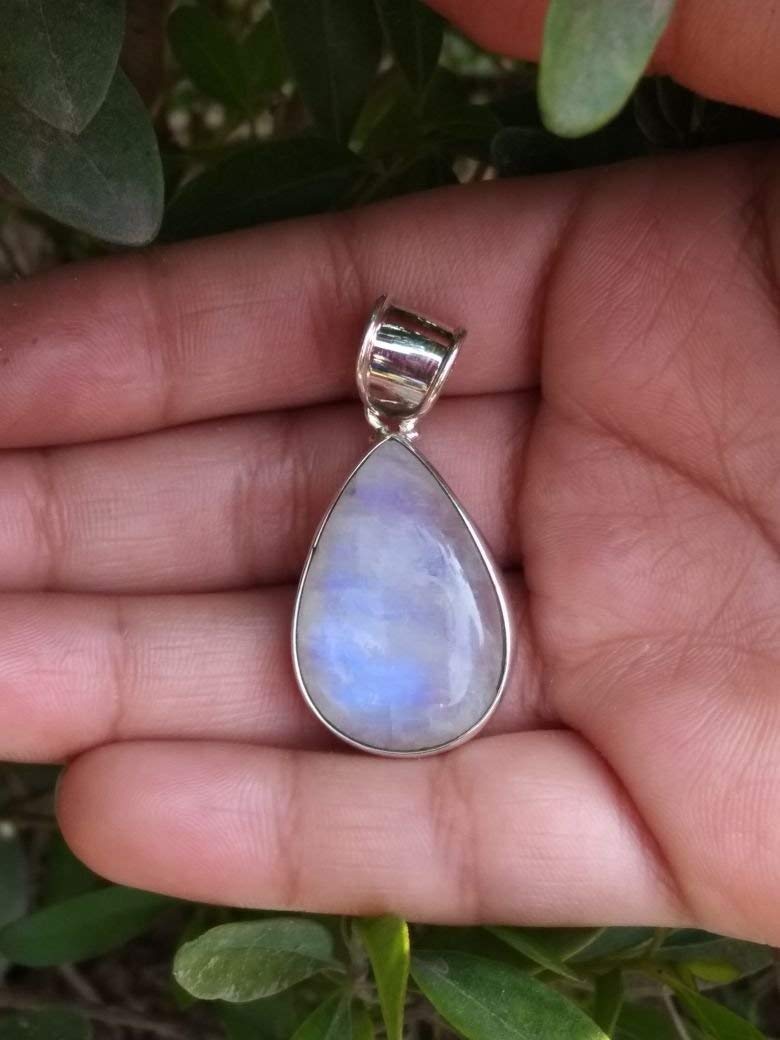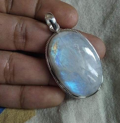 925 Sterling Silver Natural Rainbow Moonstone Pendant Handmade