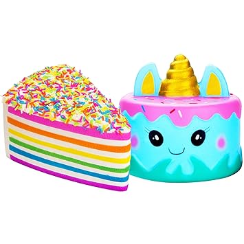 R Horse Jumbo Cute Narwhal Cake Rainbow Cake Set Kawaii Cream Scented Squishies Slow Rising Decompression Squeeze Toys For Kids Or Stress Relief Toy Hop Props Decorative Props Large 2 Pack Amazon In
