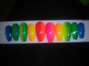 Neon Rainbow Ombre Bling Nails W Crystals Gel Press On Jelly