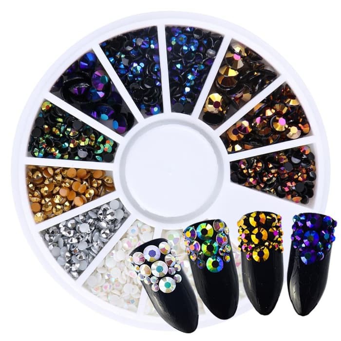 Hai Ada Yg Baru Nih Gold Crystal Rainbow Neon Ab Nail Stones Wheel