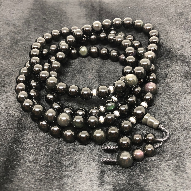 Black Rainbow Obsidian 108 Bead Mala Bracelet Zenshopworld
