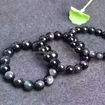 Natural Black Rainbow Eye Obsidian Beads Bracelet For Men Women