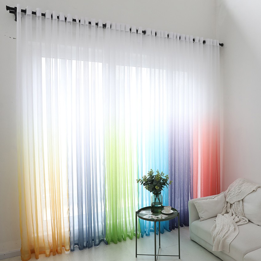 6 Color Gradient Rainbow Romantic Curtain Living Room Ombre Sheer