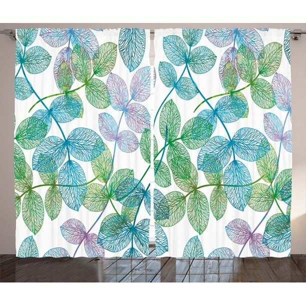 Floral Curtains 2 Panels Set Flowers Leaves Ivy Vein Like Rainbow