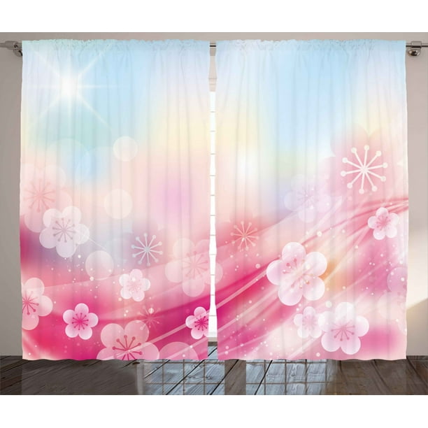 Modern Curtains 2 Panels Set Charming Blossoms Flowers Buds Rays