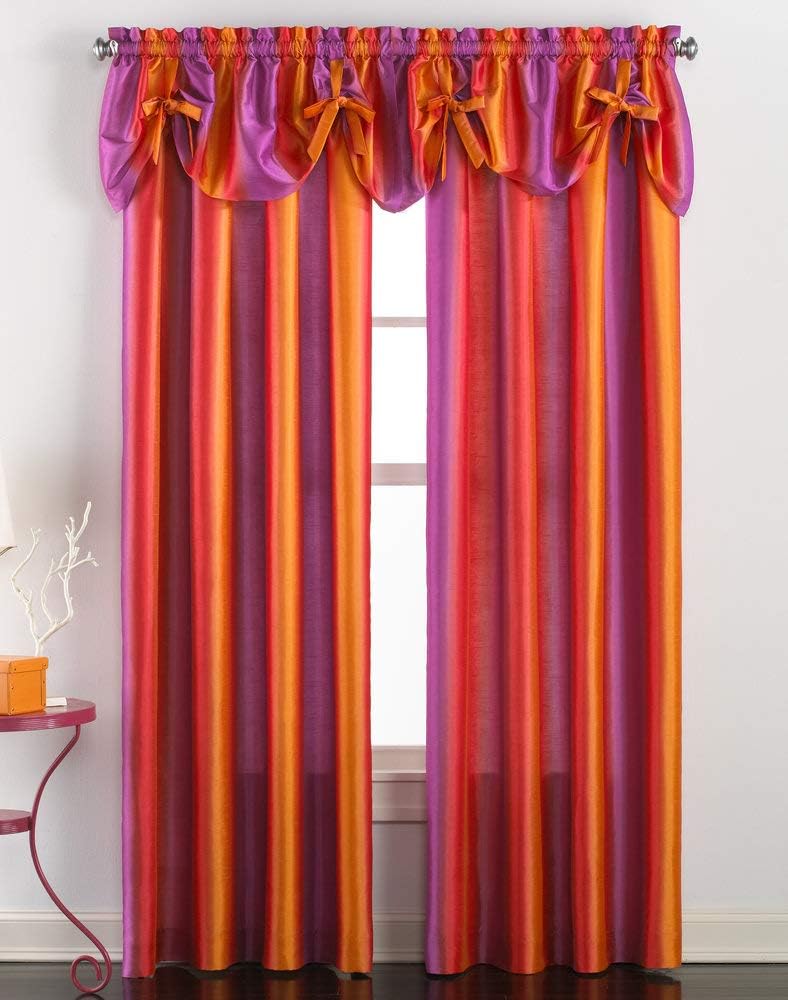 Rainbow Ombre Faux Silk Curtain Panel Pair And Valance Set For