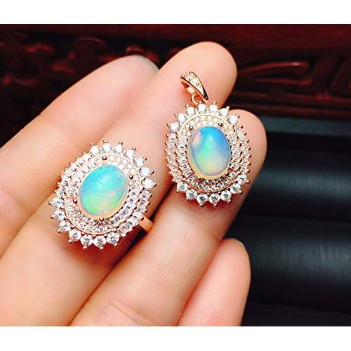 All Natural Opal Ring Earrings Pendant Set October Birthstone