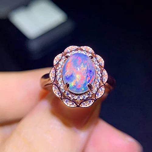 Junxin Female Rainbow Blue White Fire Opal Ring Fashion Style Black Go