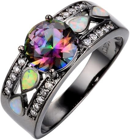 Amazon Com Nitlovely Elegant Rainbow Opal Ring Fashion White Cz
