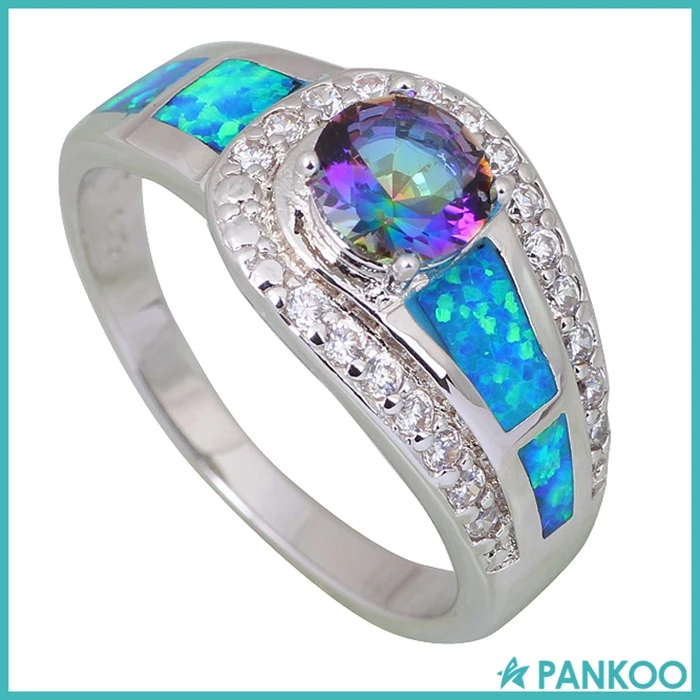 2020 Elegant Rainbow Opal Ring Fashion White Cz Wedding Jewelry