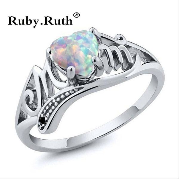 2020 Heart Cut Rainbow Opal Ring Fashion White Blue Cz