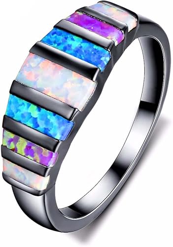 Amazon Com T Jewelry Rainbow Opal Stone For Women Ring Black Gold