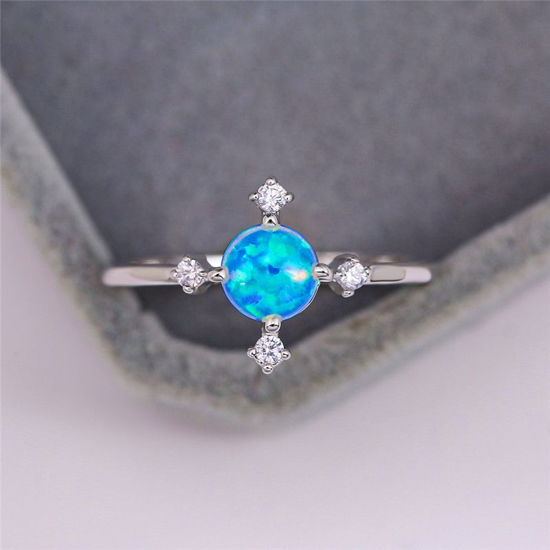 2020 Minimalist Female Blue Opal Stone Ring Trendy Thin Round