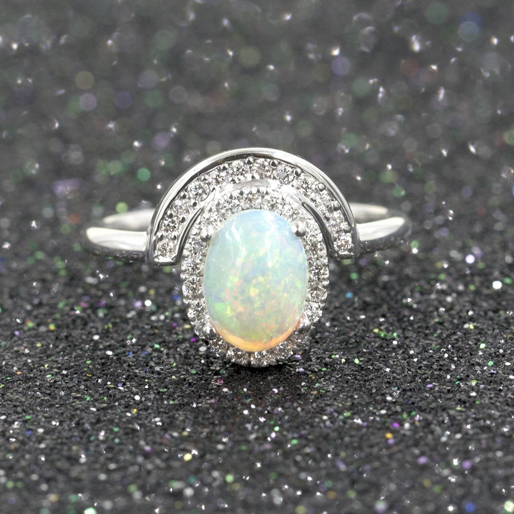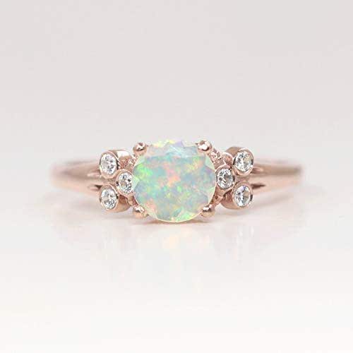 Dainty Opal Ring Opal Diamond Ring Opal Engagement Ring Opal