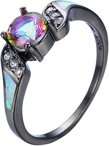 Trendy Rainbow Opal Ring Black Gold Filled Mysterious Jewelry Wedding